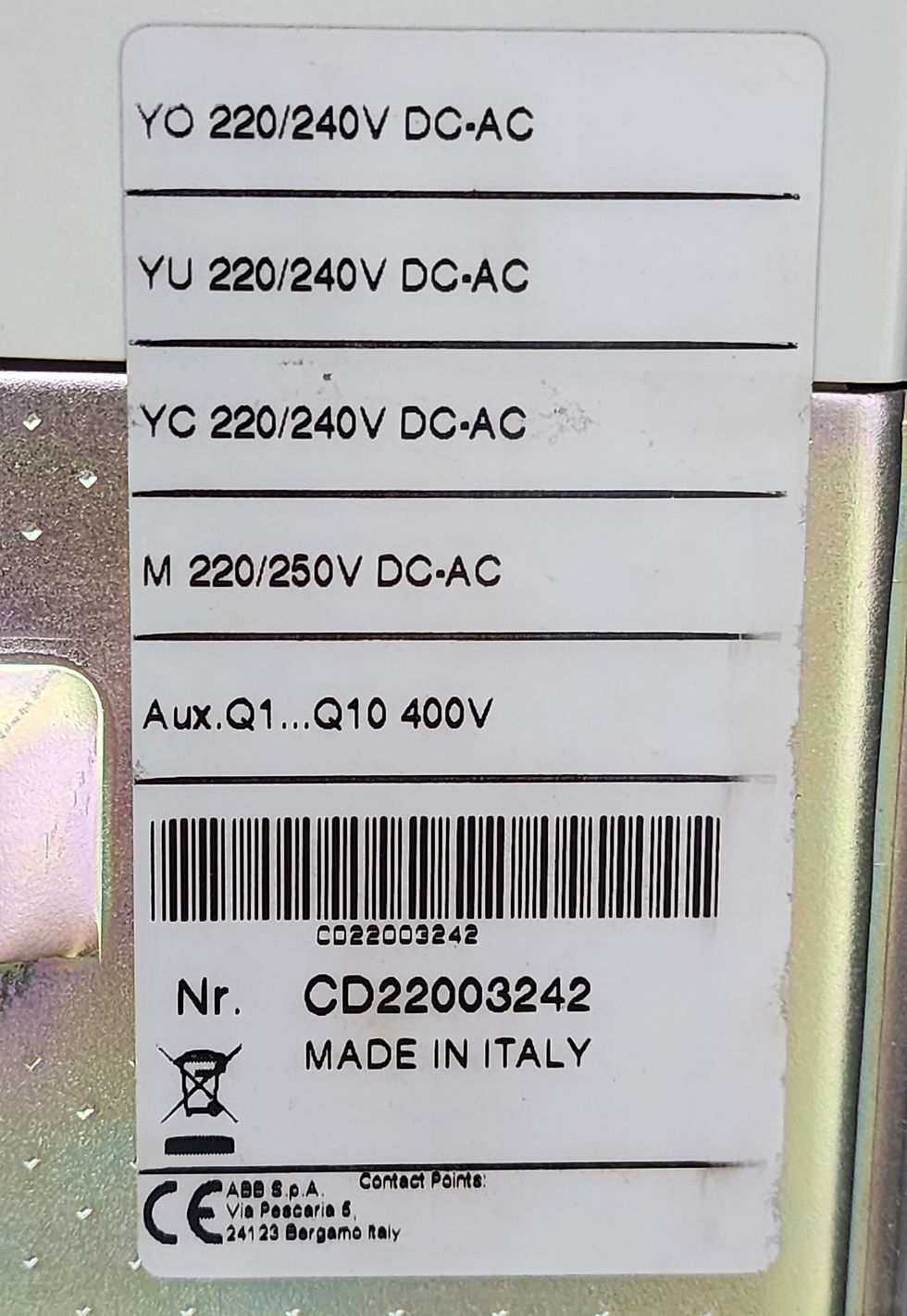 ABB SACE E3S 16 1600A 3Pole Air Circuit Breaker PR121/P-LI 690V 75kA