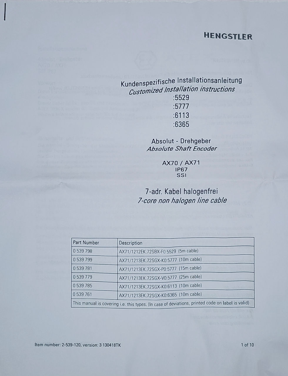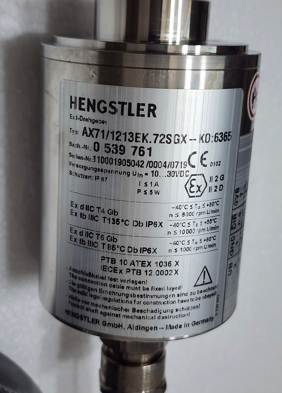 Hengstler 0539761 AX71/1213EK.72SGX-K0:6365 Ex Absolute Encoder 0 539 761