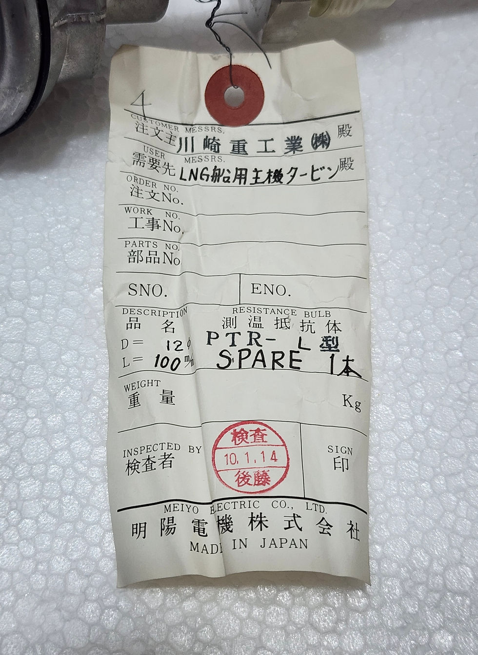 Meiyo Electric PTR-L Resistance Bulb 150°C Pt100Ω L100 D12