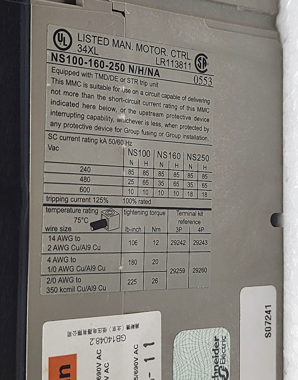 MERLIN GERIN NS100H TM32D 32A 3P 29677 Circuit Breaker NS100-160-250 N/H/NA